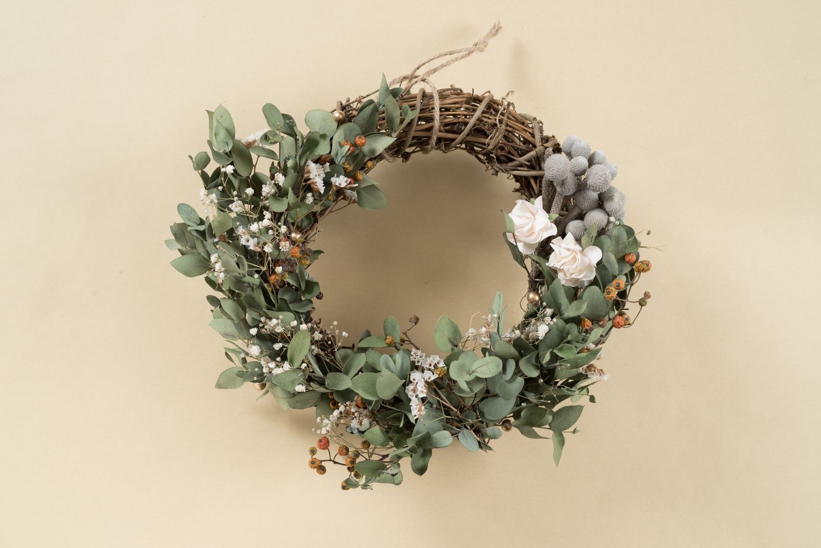 ユーカリとドライフラワーを使ったナチュラルな『リース』