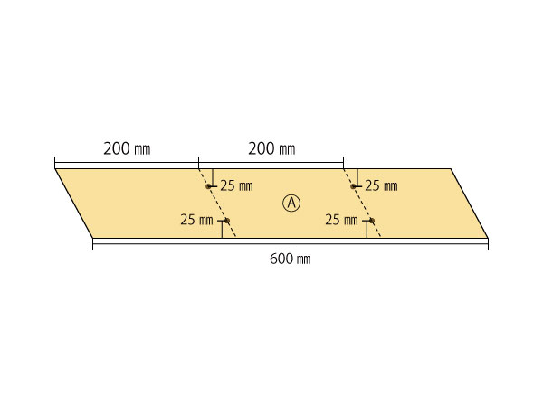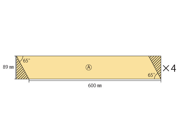 脚(A)に、受け(D)を取り付ける位置の印を付ける。印に合わせて木工用接着剤を塗り、スリムねじ(35mm)で固定する。次に、(A)と(B)(C)をスリムねじ(45mm)で取り付ける。最後に、二つの脚を木工用接着剤で接着し、スリムねじ(35mm)でしっかり固定する。