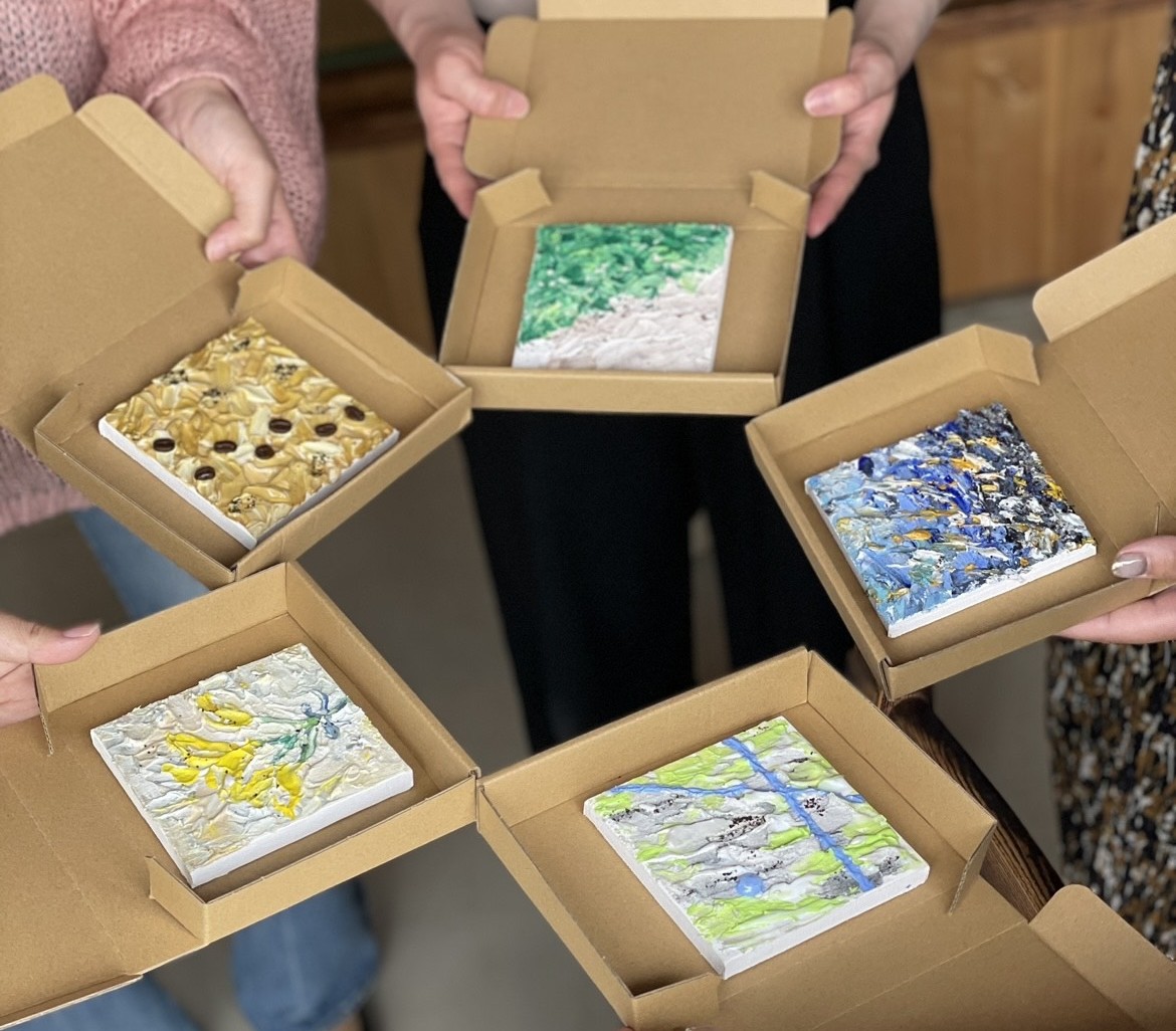 初心者も気軽に楽しめるアート体験。絵の具に砂や石膏を混ぜ、立体的な質感を生み出すテクスチャーアートで、世界に一つだけの作品づくりを楽しめる。