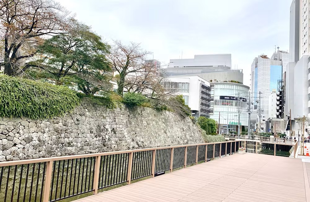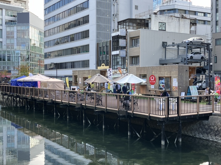 駿府城外堀沿いのデッキスペース。マルシェやポップアップストア、音楽イベントなど、多彩な催しの会場として利用されている。飲食・調理行為が可能なため、フード系イベントにも最適。発電機の持ち込みもできるので、電源がない場所での出店や演出にも対応できる。