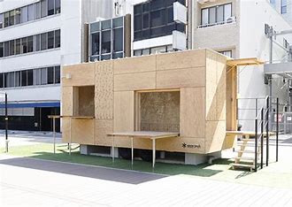建築家隈研吾氏がSnowPeakと共同開発したモバイルハウス。広さ約4坪の室内スペース。ポップアップストアやテイクアウト販売の場としてだけでなく、展示会やワークショップ会場としても利用されている。エアコン、Wi-Fi、電源完備。飲食も可能(ただし、調理行為は不可)。