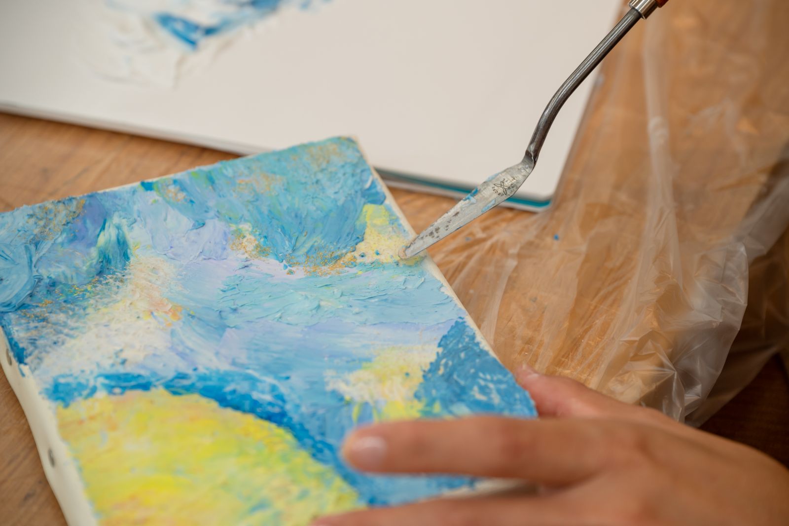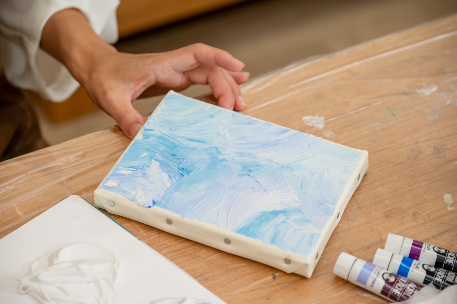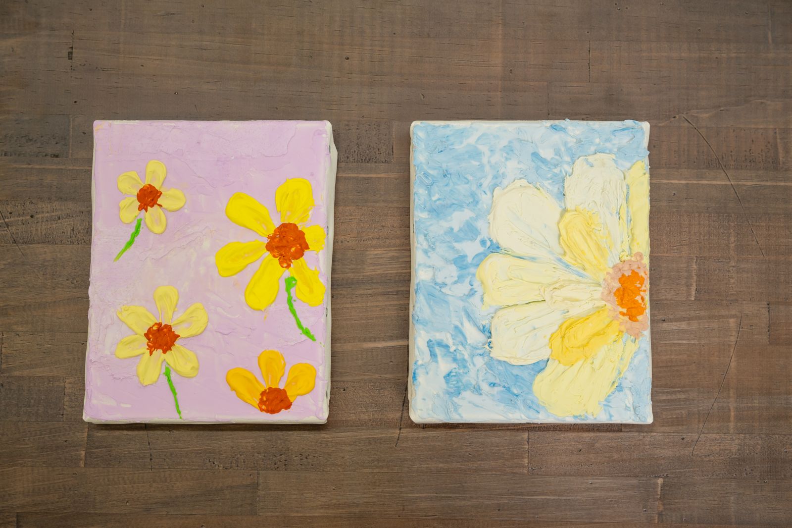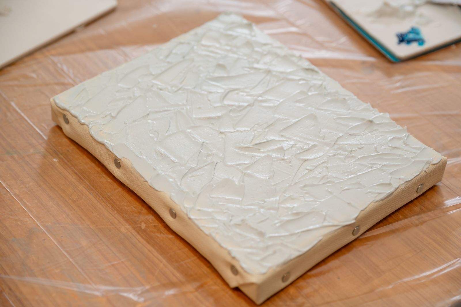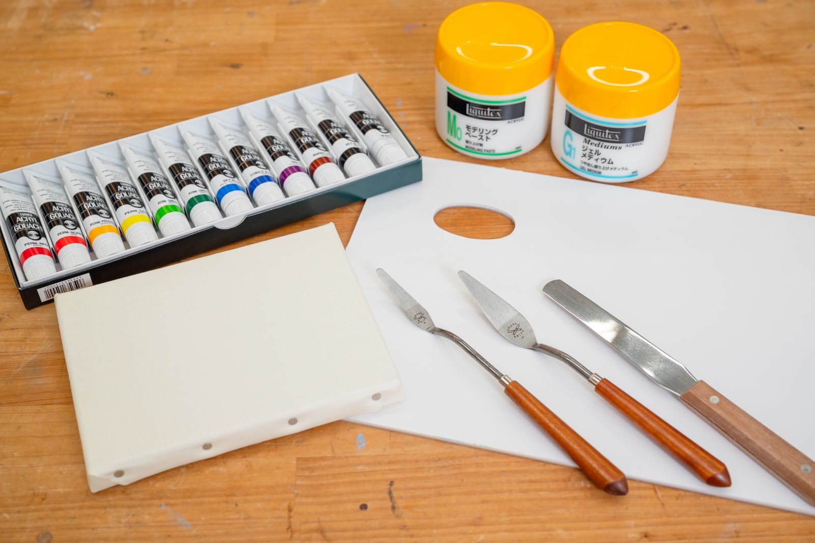 今回はアクリル画材を使って、平面のキャンバスに立体的な絵を描く「テクスチャーアート」にチャレンジする。