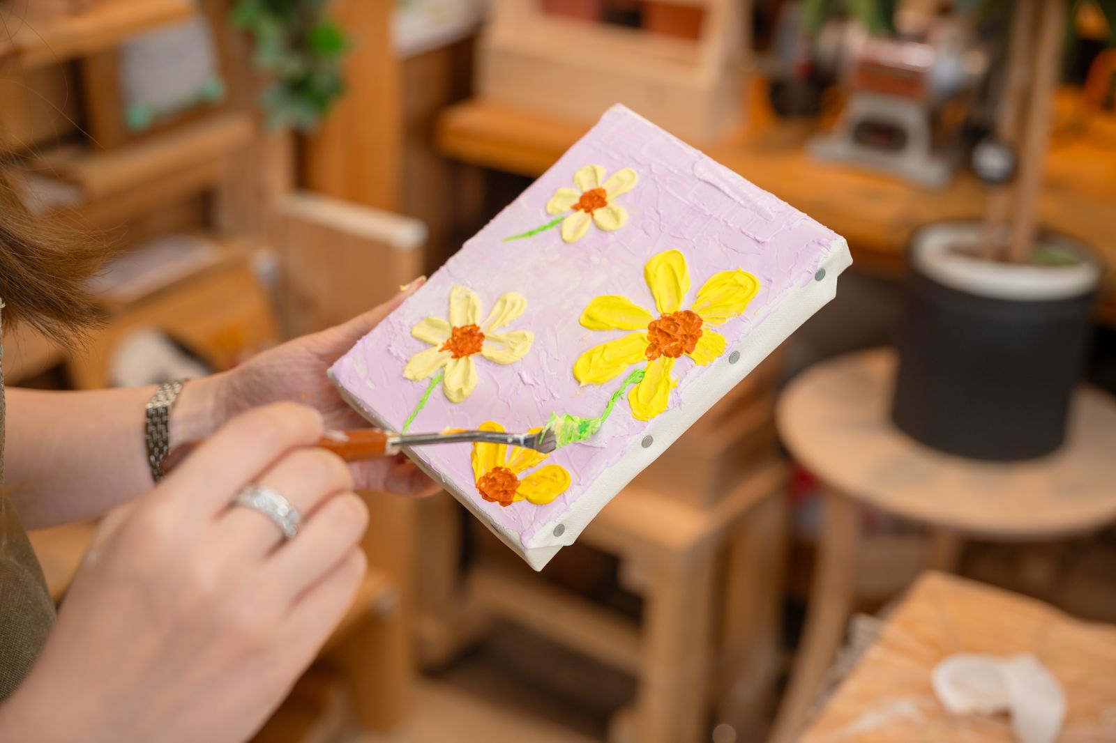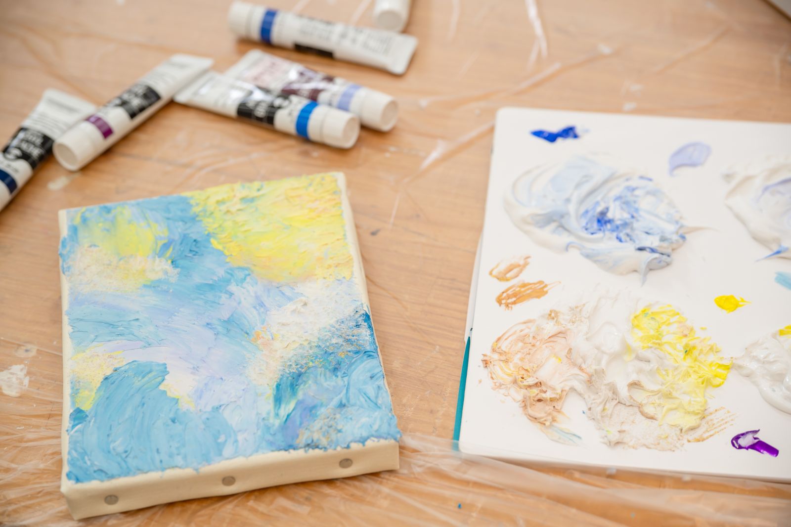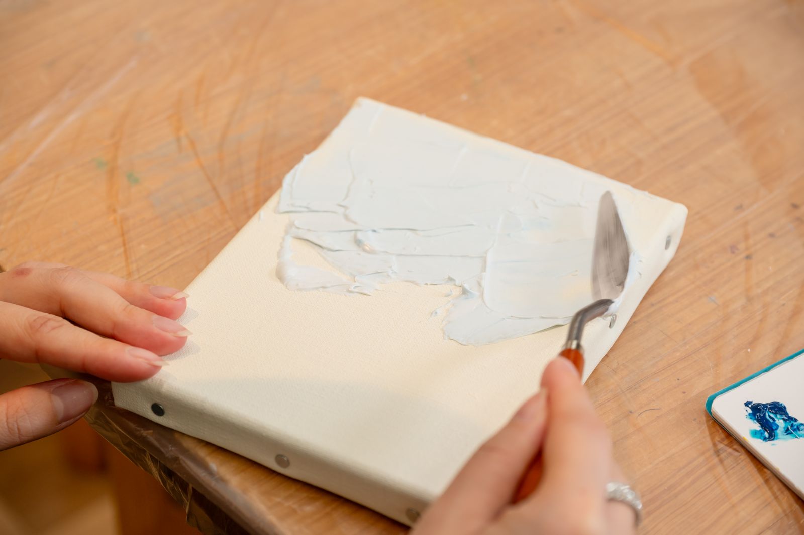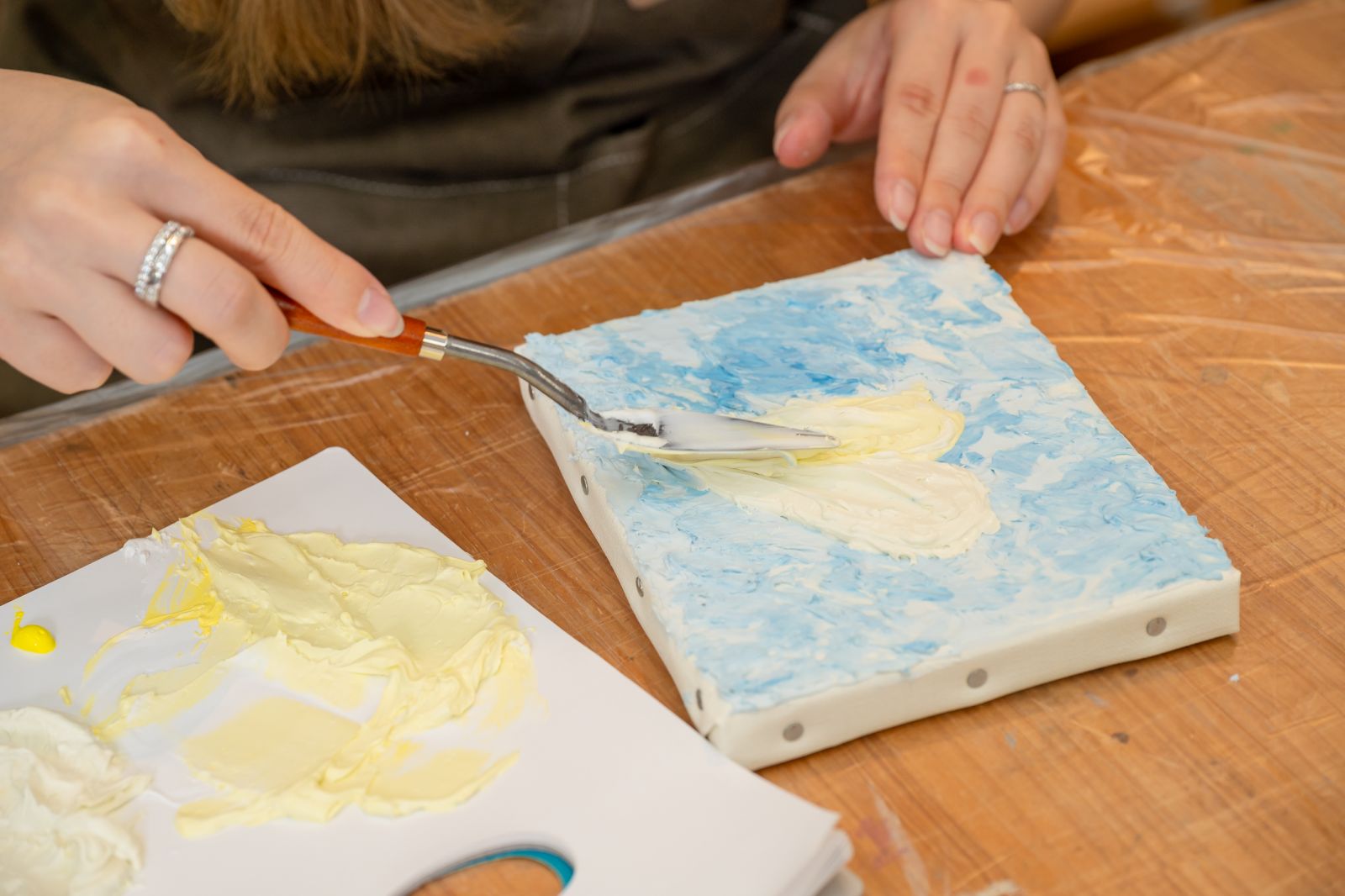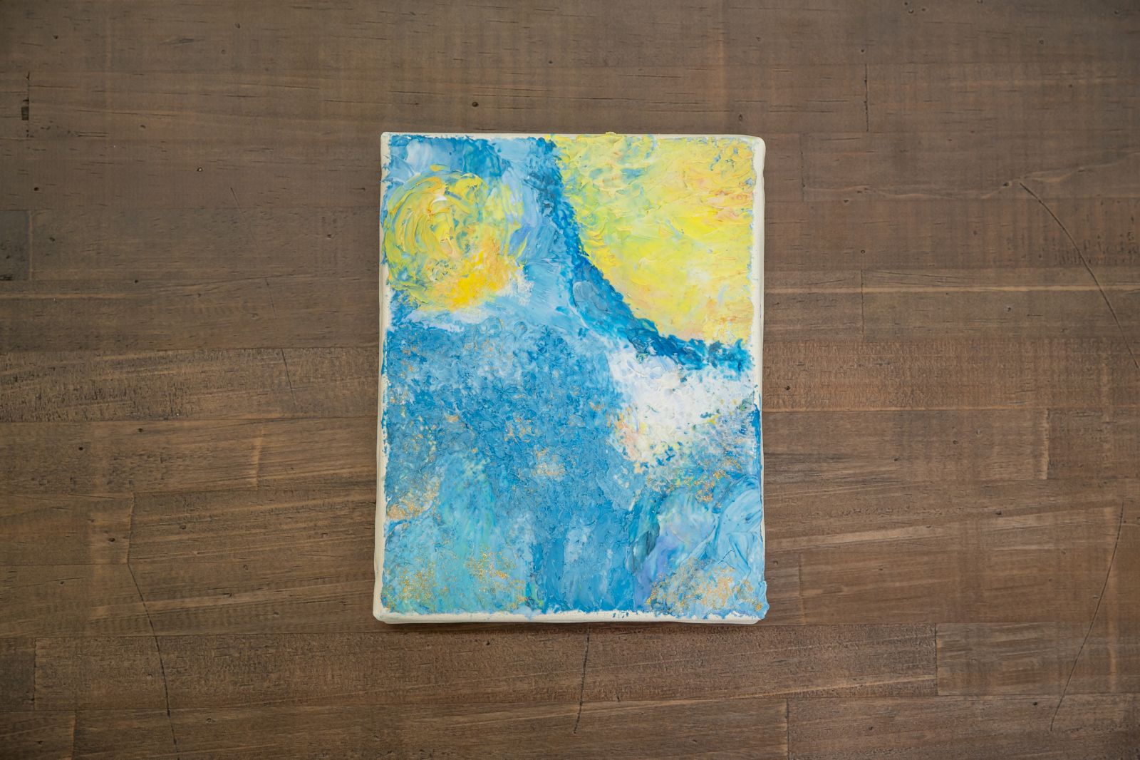 今回はアクリル画材を使って、平面のキャンバスに立体的な絵を描く「テクスチャーアート」にチャレンジする。
