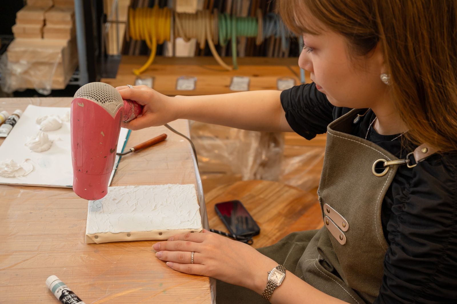 第21回目のDIY LABOは「テクスチャーアート」。絵の具や粘度のあるペーストの素材感、表面の凹凸を活かしてオリジナル作品に仕上げる。