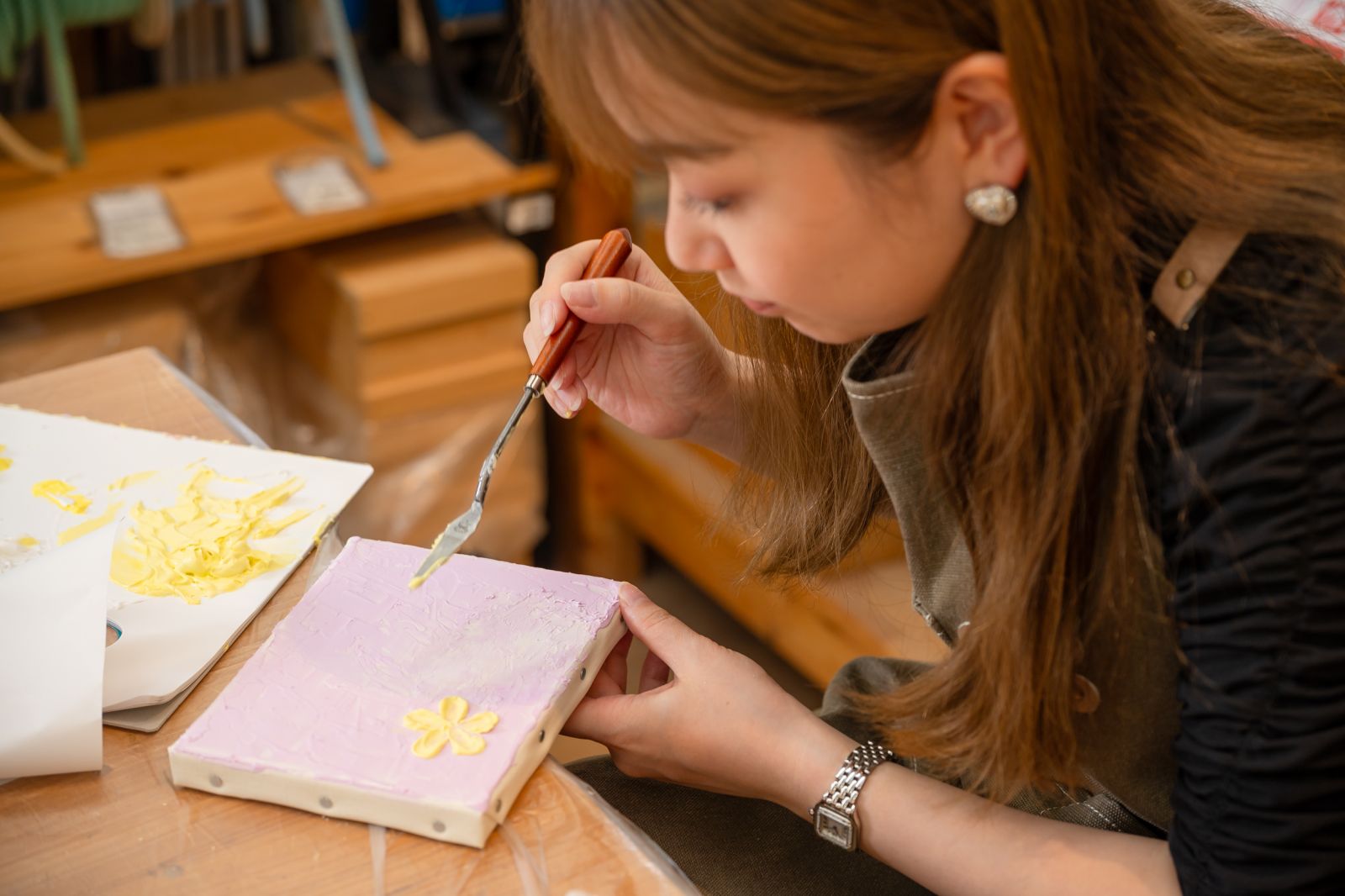 「私はベースが乾いたから、お花の花びらにチャレンジするよ〜」
